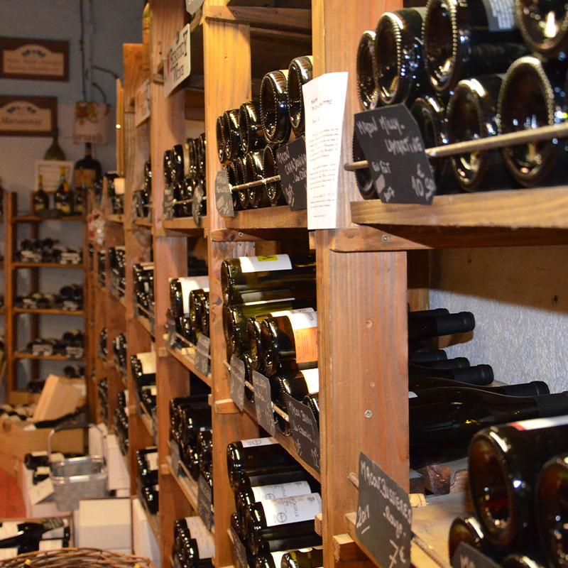La cave offre un très vaste choix de vins (plus de 300 références) et autres alcools ainsi qu’une sélection de produits régionaux et de petit matériel de cave.